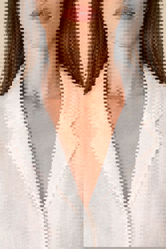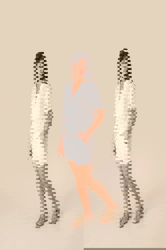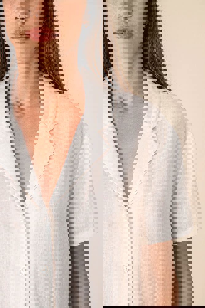 100% linnen. Geweven. Regular fit. Bowlingkraag. Knooplijst met witte knopen met parelmoerlook van gerecycled plastic voor alle kleuren, binnenin afgewerkt met een oplegsel. Gevoerd rugstuk. De mouwuiteinden en de zoom zijn afgewerkt met enkel stiksel. Kledingstuk gewassen na montage: mogelijk zijn er kleurverschillen tussen de producten.