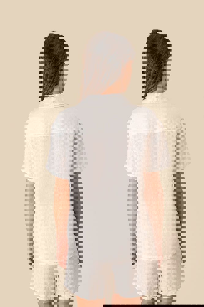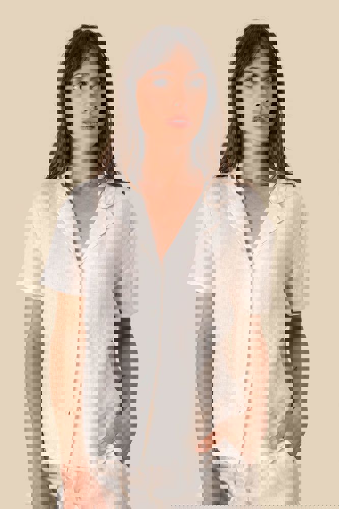 SP523 - Damesoverhemd met korte mouwen en bowlingkraag in linnen