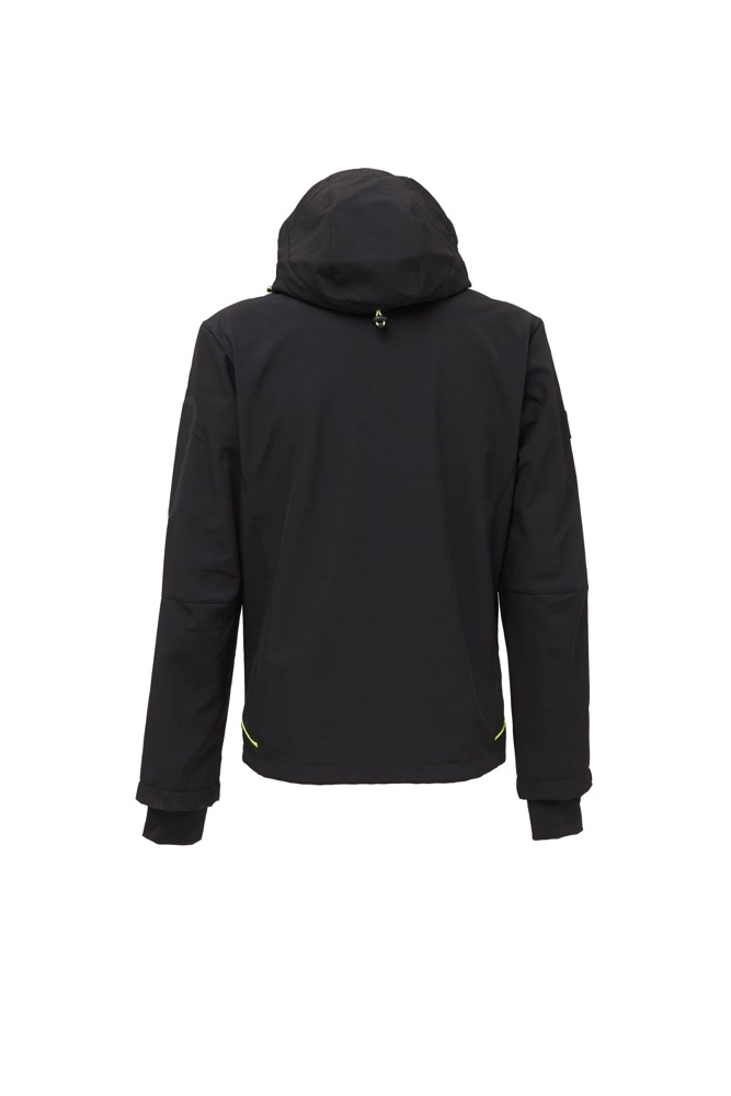 96% polyester / 4% elasthan. Jas in Softshell met U-Tex-membraan waardoor de stof waterdicht, ademend en winddicht is. Zeer comfortabele en sterke jas met een zachte voering van microfleece. Voorsluiting met waterdichte rits. Voorgevormde mouwen voor optimale pasvorm, verstelbare en afneembare capuchon, met klittenband verstelbare manchetten en elastische winddichte manchetten met duimgat. Met twee voorzakken met fluo ritssluiting en verstelbaar koord aan de binnenkant. Een borstzakje voor de mobiele telefoon met Free Sound-technologie en fluo ritssluiting. Twee grote binnenzakken. Extra warmtegelaste zak op de linkermouw. Gevormde zoom. Reflecterende strook op de achterkant van de kraag. Ton-sur-ton logo U-Power.