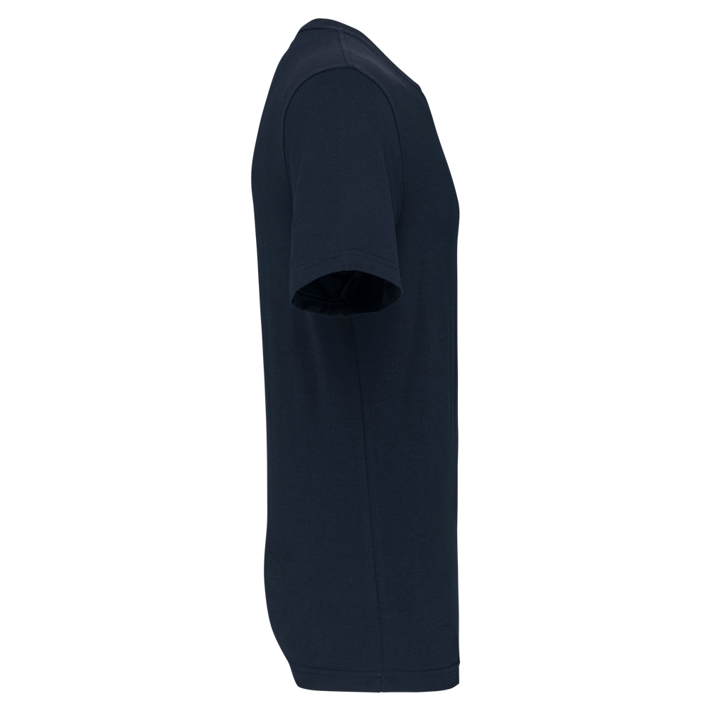 Effen kleuren : 60% katoen / 40% polyester. Gemaakt van 60% biologisch katoen en 40% gerecycled polyester. Kleur Oxford Grey : 90% katoen / 10% viscose. Gemaakt van 90% biologisch katoen. Alle kleuren zijn gemaakt van biologisch katoen. Zachte enzymgewassen stof. Wassen op 60°. Rechte snit. Ronde halsopening met 1x1 ribboord. Nektape met visgraatmotief in contrasterend oranje (verlengde van rug-schouder behalve de kleur wit). Verstevigde schoudernaad. Tear-away merklabel voor eenvoudige personalisatie.