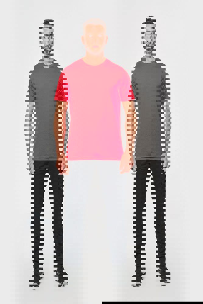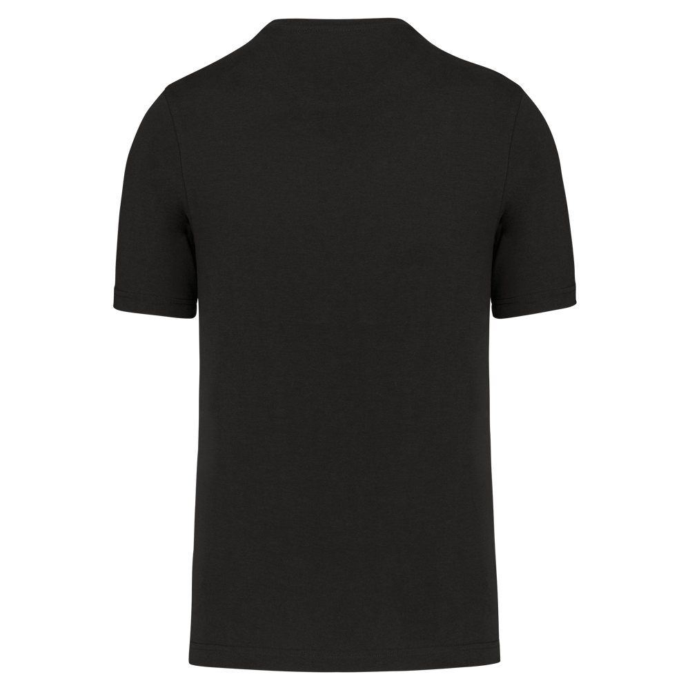 Effen kleuren : 60% katoen / 40% polyester. Gemaakt van 60% biologisch katoen en 40% gerecycled polyester. Kleur Oxford Grey : 90% katoen / 10% viscose. Gemaakt van 90% biologisch katoen. Alle kleuren zijn gemaakt van biologisch katoen. Zachte enzymgewassen stof. Wassen op 60°. Rechte snit. Ronde halsopening met 1x1 ribboord. Nektape met visgraatmotief in contrasterend oranje (verlengde van rug-schouder behalve de kleur wit). Verstevigde schoudernaad. Tear-away merklabel voor eenvoudige personalisatie.