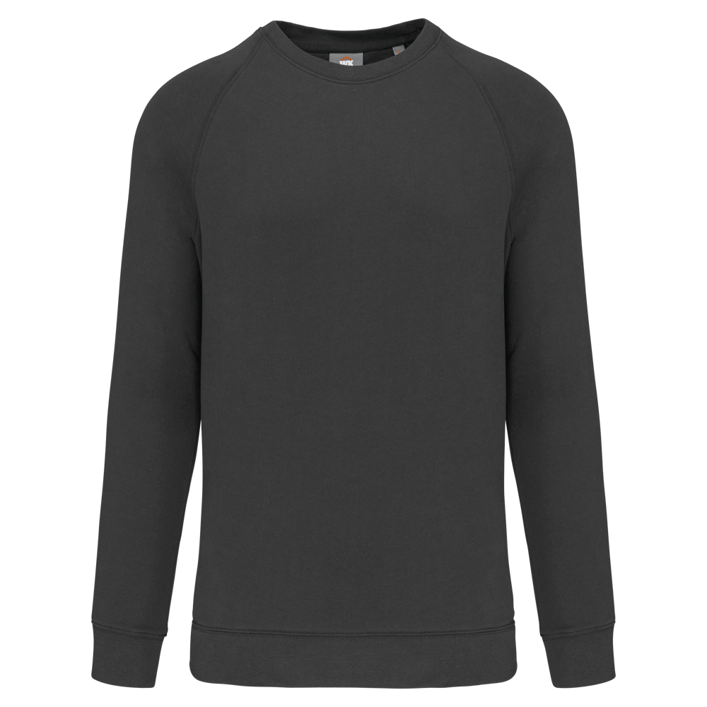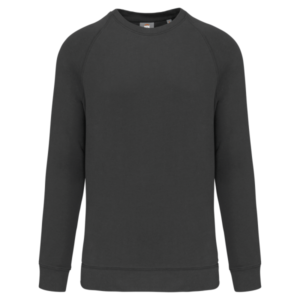 100% katoen. Geborsteld fleece 3 draden. Wassen op 60°. Rechte snit. Raglanmouwen. Ton-sur-ton nektape met visgraatmotief aan de binnenkant. Ronde hals. 1x1 ribboord in buisconstructie voor een betere afwerking aan de hals, de mouwuiteinden en de onderkant. Inzetstuk in halve maan in de kraag. Labels in katoen.