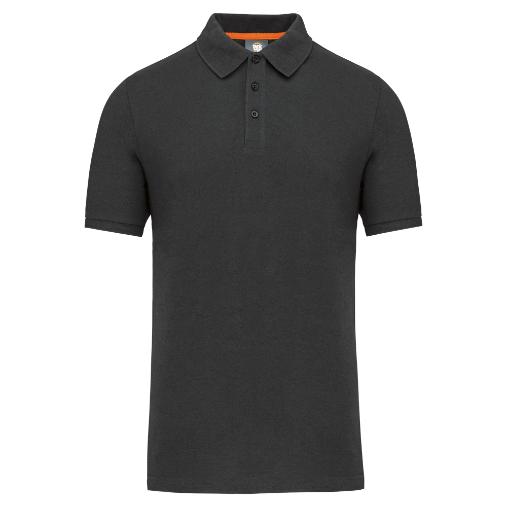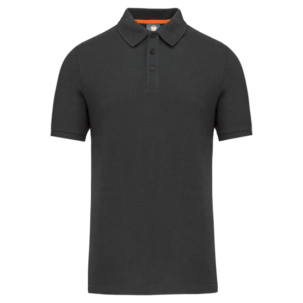 Effen kleuren : 60% katoen / 40% polyester. Gemaakt van 60% biologisch katoen en 40% gerecycled polyester. Kleur Oxford Grey : 90% katoen / 10% viscose. Gemaakt van 90% biologisch katoen. Alle kleuren zijn gemaakt van biologisch katoen. Piquétricot. Wassen op 60°. Rechte snit. Kraag en mouwuiteinden in 1x1 ribboord met nektape met visgraatmotief in contrasterend oranje. Ton-sur-ton lijst met 3 knopen. 1ste knoopsgat horizontaal. Zijsplitten met visgraatmotief in contrasterend oranje. Dubbel stiksel aan de onderkant. Tear-away merklabel voor eenvoudige personalisatie.
