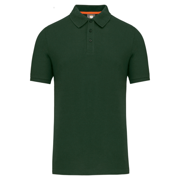 Effen kleuren : 60% katoen / 40% polyester. Gemaakt van 60% biologisch katoen en 40% gerecycled polyester. Kleur Oxford Grey : 90% katoen / 10% viscose. Gemaakt van 90% biologisch katoen. Alle kleuren zijn gemaakt van biologisch katoen. Piquétricot. Wassen op 60°. Rechte snit. Kraag en mouwuiteinden in 1x1 ribboord met nektape met visgraatmotief in contrasterend oranje. Ton-sur-ton lijst met 3 knopen. 1ste knoopsgat horizontaal. Zijsplitten met visgraatmotief in contrasterend oranje. Dubbel stiksel aan de onderkant. Tear-away merklabel voor eenvoudige personalisatie.