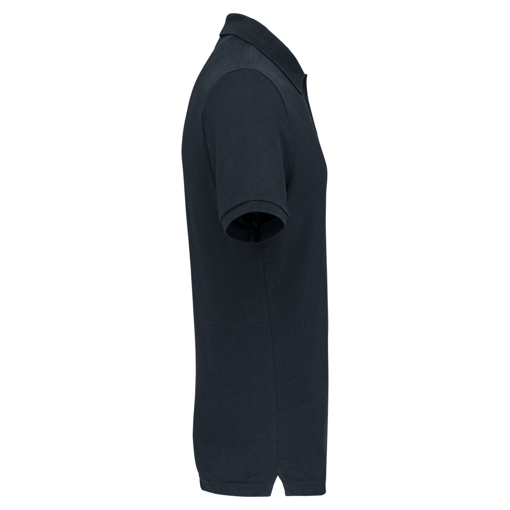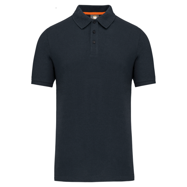 Effen kleuren : 60% katoen / 40% polyester. Gemaakt van 60% biologisch katoen en 40% gerecycled polyester. Kleur Oxford Grey : 90% katoen / 10% viscose. Gemaakt van 90% biologisch katoen. Alle kleuren zijn gemaakt van biologisch katoen. Piquétricot. Wassen op 60°. Rechte snit. Kraag en mouwuiteinden in 1x1 ribboord met nektape met visgraatmotief in contrasterend oranje. Ton-sur-ton lijst met 3 knopen. 1ste knoopsgat horizontaal. Zijsplitten met visgraatmotief in contrasterend oranje. Dubbel stiksel aan de onderkant. Tear-away merklabel voor eenvoudige personalisatie.