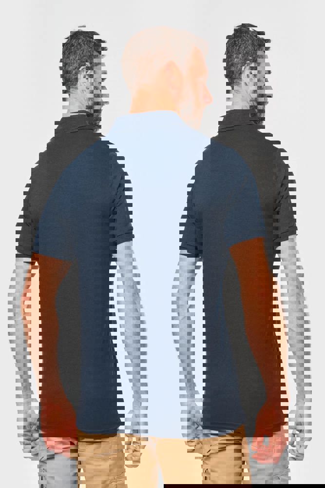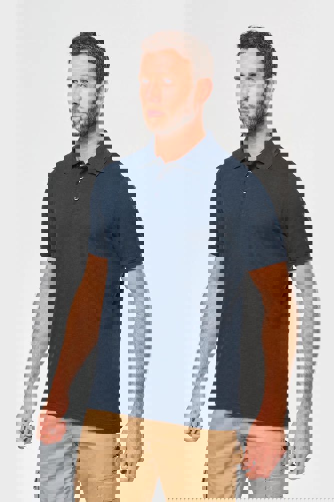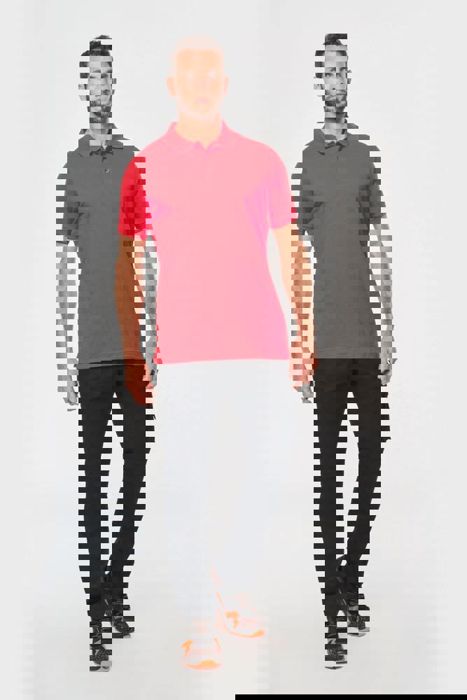 Effen kleuren : 60% katoen / 40% polyester. Gemaakt van 60% biologisch katoen en 40% gerecycled polyester. Kleur Oxford Grey : 90% katoen / 10% viscose. Gemaakt van 90% biologisch katoen. Alle kleuren zijn gemaakt van biologisch katoen. Piquétricot. Wassen op 60°. Rechte snit. Kraag en mouwuiteinden in 1x1 ribboord met nektape met visgraatmotief in contrasterend oranje. Ton-sur-ton lijst met 3 knopen. 1ste knoopsgat horizontaal. Zijsplitten met visgraatmotief in contrasterend oranje. Dubbel stiksel aan de onderkant. Tear-away merklabel voor eenvoudige personalisatie.