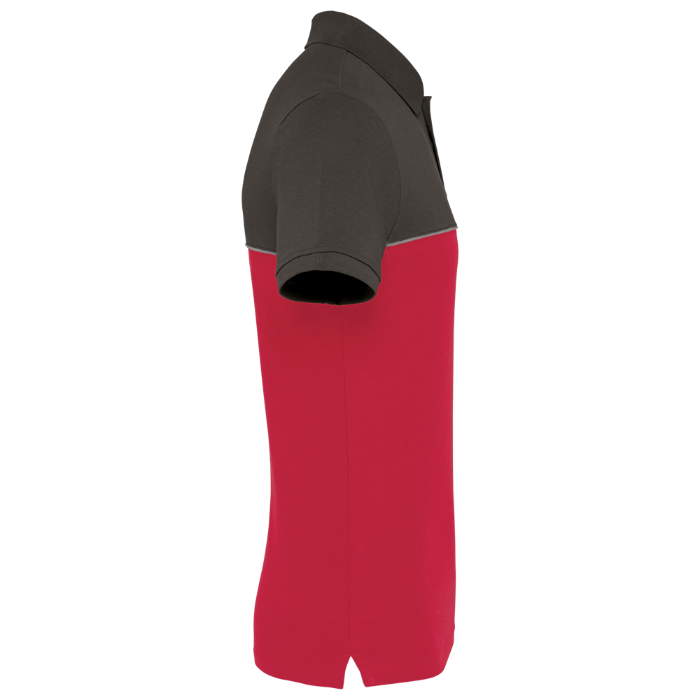 60% katoen / 40% polyester. Gemaakt van 60% gekamd katoen en 40% gerecycleerd polyester. Vortex-garen. Piquétricot. Anti-pluisbehandeling. Wasbaar op 60 °C. Rechte snit. Toon-op-toon lijst met 2 knopen. Kraag in 1x1 ribboord met contrasterende nektape met visgraatmotief.Contrasterende bies tussen de tweekleurige delen van het kledingstuk (lichaam, voorkant mouwen en rug). Afgewerkt met ribboord aan de mouwuiteinden. Zijsplitten met contrasterend visgraatmotief. Afwerking met dubbel stiksel onderaan. Tear-away merklabel.