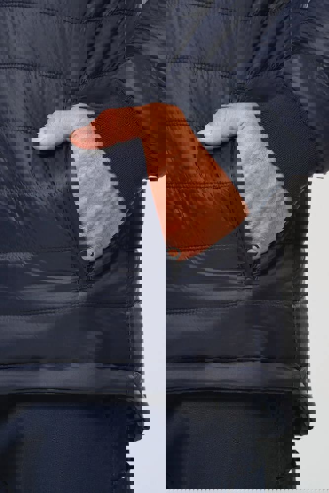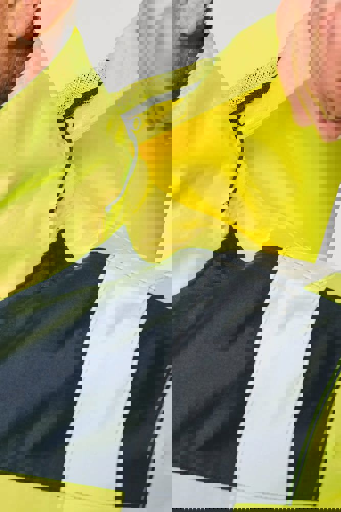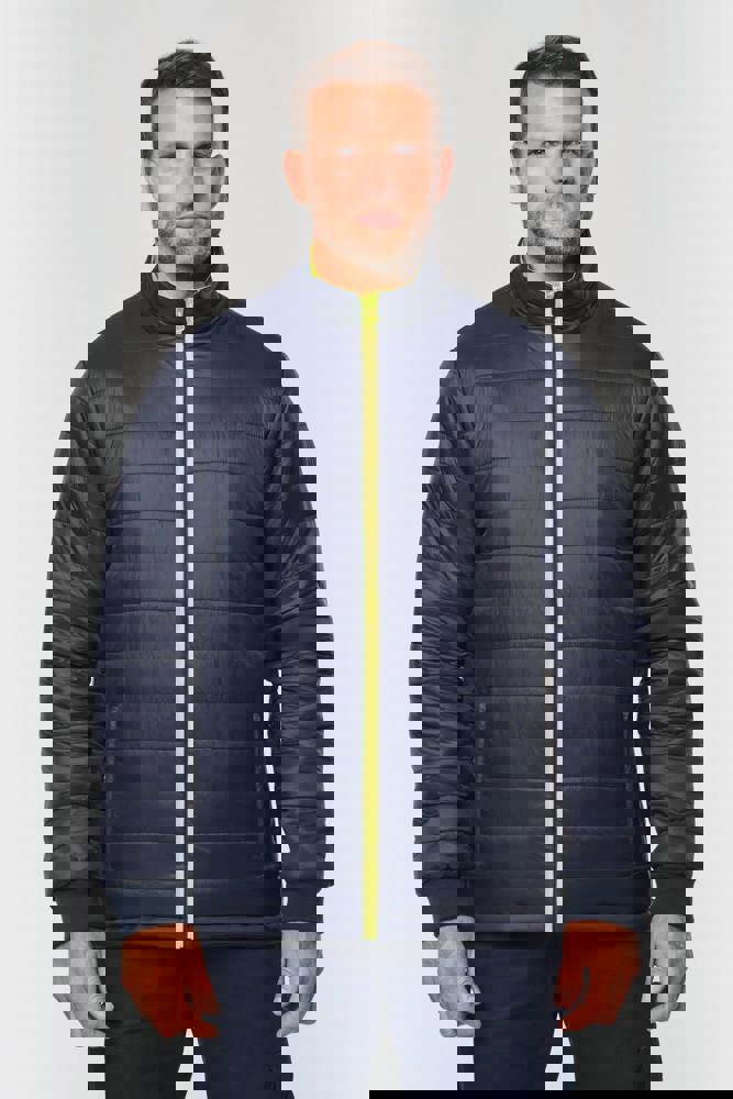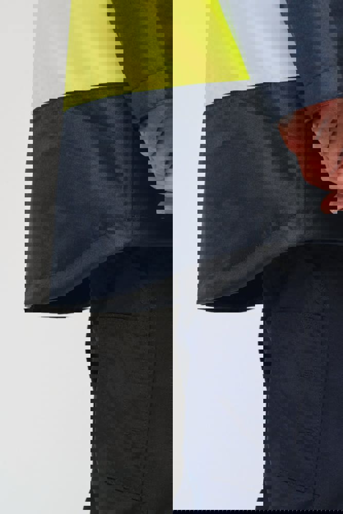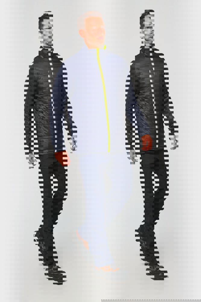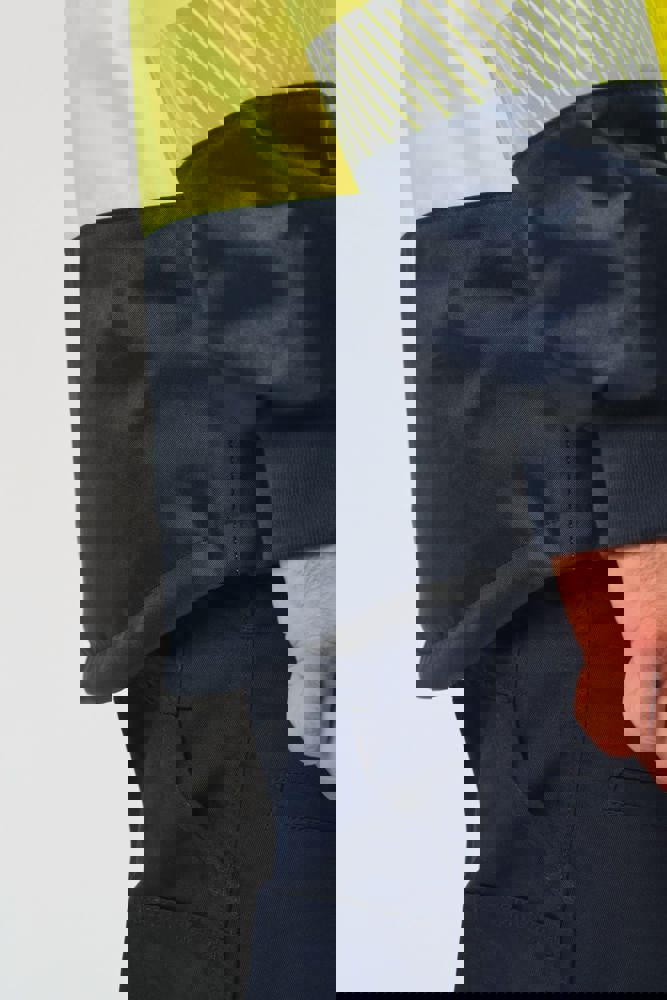 100% gerecycled polyester. Oxford stof met PU-coating. Waterdichte behandeling en thermisch gelaste naden. Wasbaar op 40°C. Dubbel-rits sluiting met een verborgen ritstrekkertje onder een flap die met klittenband is afgesloten. Binnenvoering van lichaam en mouwen in 100% polyester mesh. 2 verticale zijzakken met rits + 2 horizontale zakken met kleppen die met klittenband zijn afgesloten. 1 verborgen borstzak met rits onder de flap aan de linkerkant. Verstelbare manchetten met klittenband. Contrastvoering van 100% polyester fleece aan de binnenkant van de kraag met ophanglus. Afneembare capuchon met rits, gevoerd met mesh en verstelbaar met elastische trekkoorden en klittenband. Opbergzak voor de capuchon verborgen in de kraag, afgesloten met klittenband. Contrastpanelen op schouders, onderkant van de mouwen, onderkant van het kledingstuk en zakflappen. Segmentbanden met retroreflectie van 5 cm op schouders, borst, lichaam en mouwen, voor en achter. 1 borst rits + 1 zak met klittenband aan de binnenkant aan de linkerkant. 1 onzichtbare personalisatie rits aan de onderkant van het kledingstuk. Onderaan verstelbaar met elastische trekkoorden. Omkeerbare binnenjas: 100% gerecycled polyester. Oxford stof met PU-coating. Waterdichte behandeling en thermisch gelaste naden. Wasbaar op 40°C (25 wasbeurten). Rits sluiting met omkeerbare slider en ritstrekkertje. 2 verticale zijzakken met rits. 1 borstzak met rits aan de rechterkant. 2x2 ribgebreide afwerking aan de onderkant van de mouwen. Contrastpanelen aan de bovenkant van het lichaam, onderkant van de mouwen en onderkant van het kledingstuk, voor en achter. Segmentbanden met retroreflectie van 5 cm op lichaam en mouwen, voor en achter. Omkeerbare kant: 100% polyamide. Taffeta stof met PA-coating en padding. 2 verticale zijzakken met rits. Ophanglus aan de binnenkant van de kraag. 1 onzichtbare personalisatie rits aan de onderkant van het kledingstuk, verborgen in een naad. De kledingstukken zijn met elkaar verbonden door een rits systeem aan de voorkant en knopen met ophanglussen in de kraag en de mouwen. PBM Klasse II. Normen NF EN ISO 13688:2013 + NF EN ISO 13688/A1:2021 (Beschermende kleding - Algemene eisen), NF EN ISO 20471:2013 + NF EN ISO 20471/A1:2017: Buitenschaal - Klasse 3, Binnenjas - Klasse 2 (Hoogzichtbare kleding - Testmethoden en eisen), NF EN 343:2019: Klasse 3: 3 alleen voor de buitenjas (Beschermende kleding - Bescherming tegen regen), RIS-3279-TOM Issue 2:2019 alleen voor de kleur Hi Viz Orange/Navy (Norm voor de spoorwegindustrie). Afneembaar merketiket.