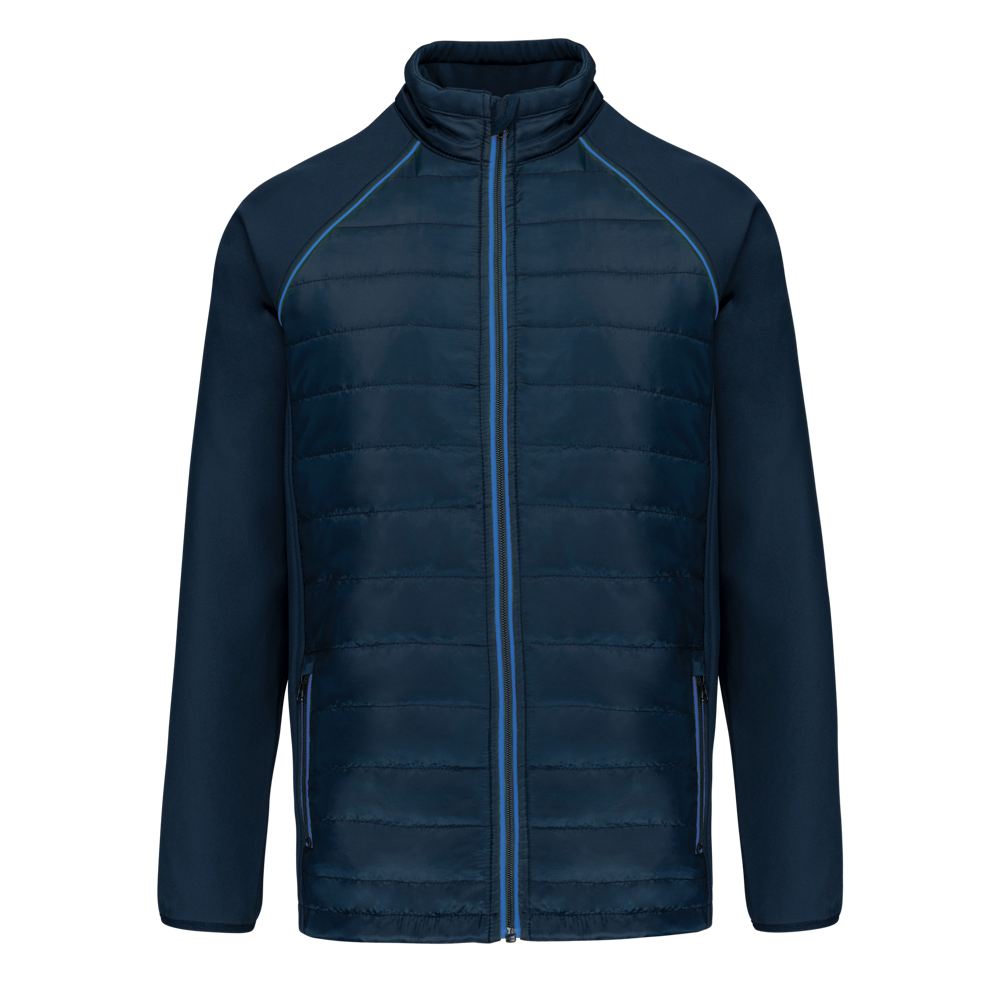 100% polyester. Softshell 2 lagen, in de 4 richtingen rekbare stof voor meer bewegingsruimte en met binnenlaag in fleece voor meer warmte op de mouwen en de schouders. Voorkant en achterkant : 100% polyester 75 g taf 230T met coating. Waterafstotende stof. 2 ritszakken aan de voorkant. 1 naametiket links aan de binnenkant. Contrasterende bies aan de mouwopeningen en in de kraag. Ritssluiting op de voorkant en contrasterende zakken. Blinde drukkersrits onderaan. Ideaal voor dagelijks gebruik.
