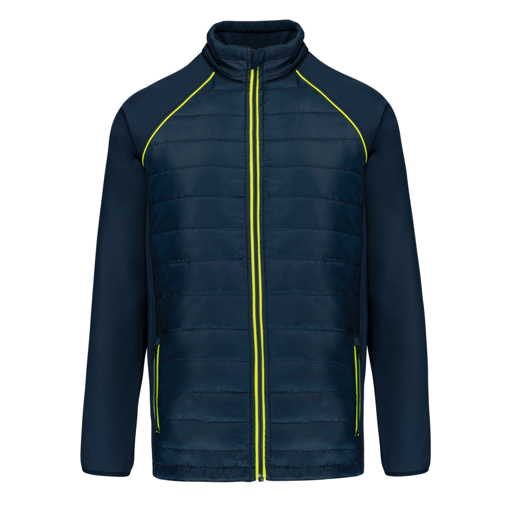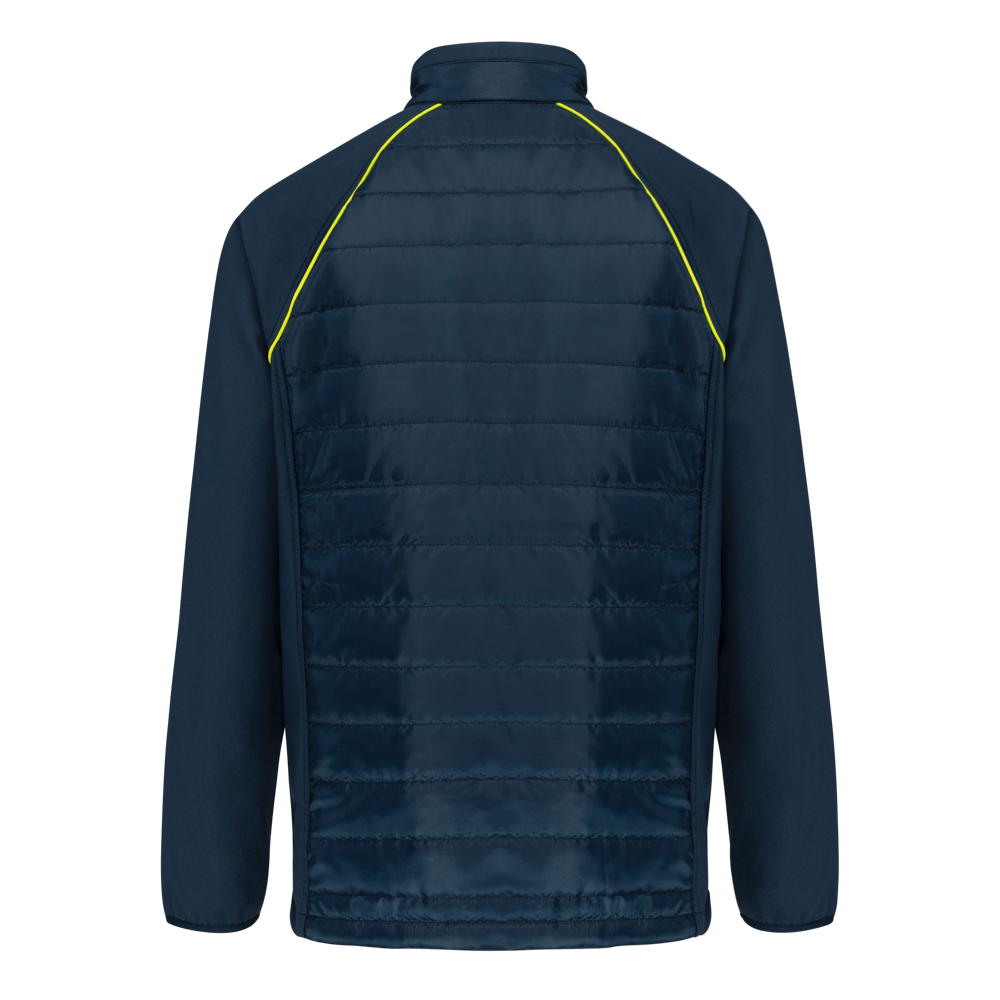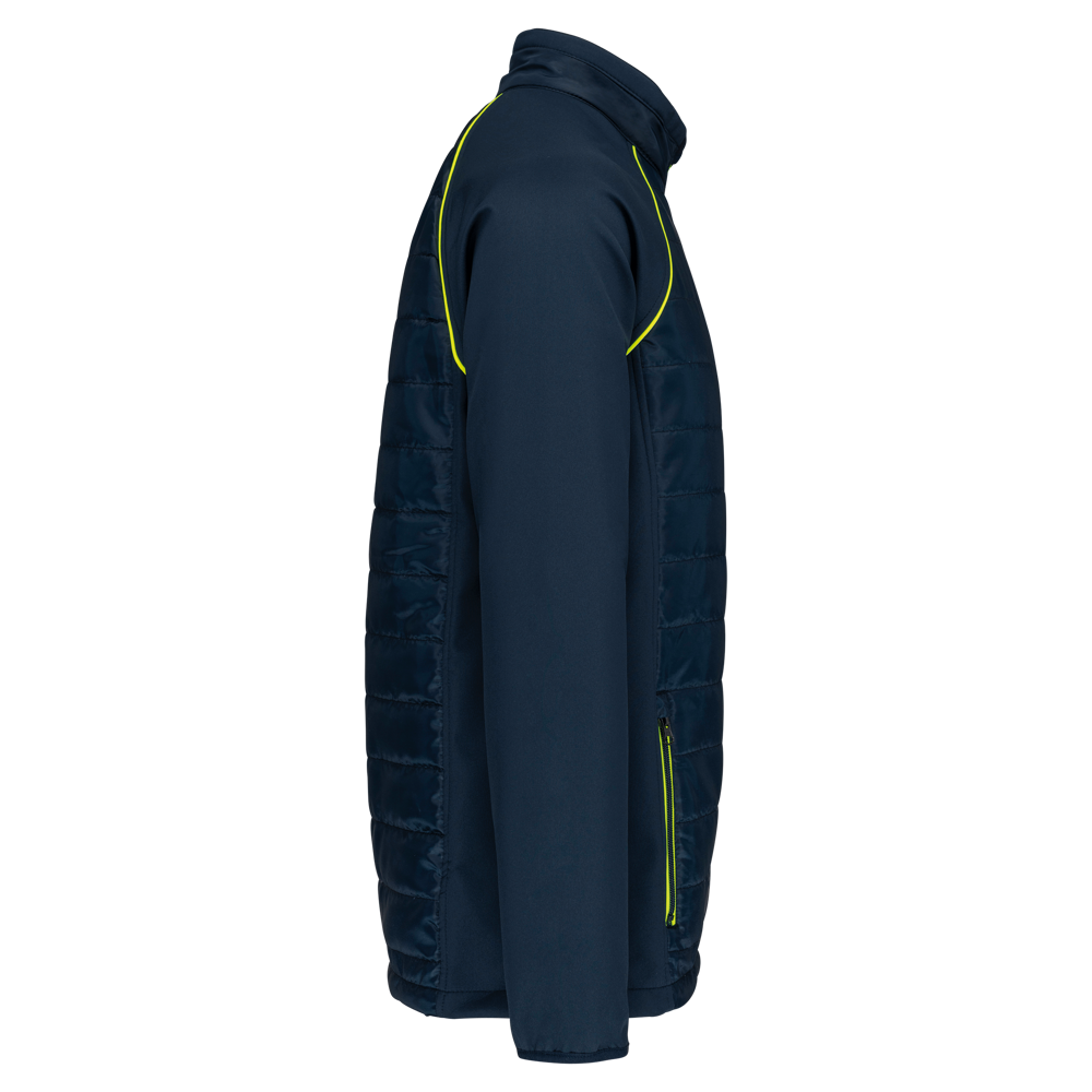 100% polyester. Softshell 2 lagen, in de 4 richtingen rekbare stof voor meer bewegingsruimte en met binnenlaag in fleece voor meer warmte op de mouwen en de schouders. Voorkant en achterkant : 100% polyester 75 g taf 230T met coating. Waterafstotende stof. 2 ritszakken aan de voorkant. 1 naametiket links aan de binnenkant. Contrasterende bies aan de mouwopeningen en in de kraag. Ritssluiting op de voorkant en contrasterende zakken. Blinde drukkersrits onderaan. Ideaal voor dagelijks gebruik.