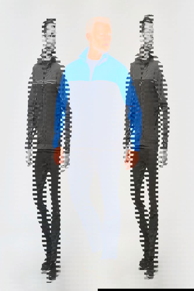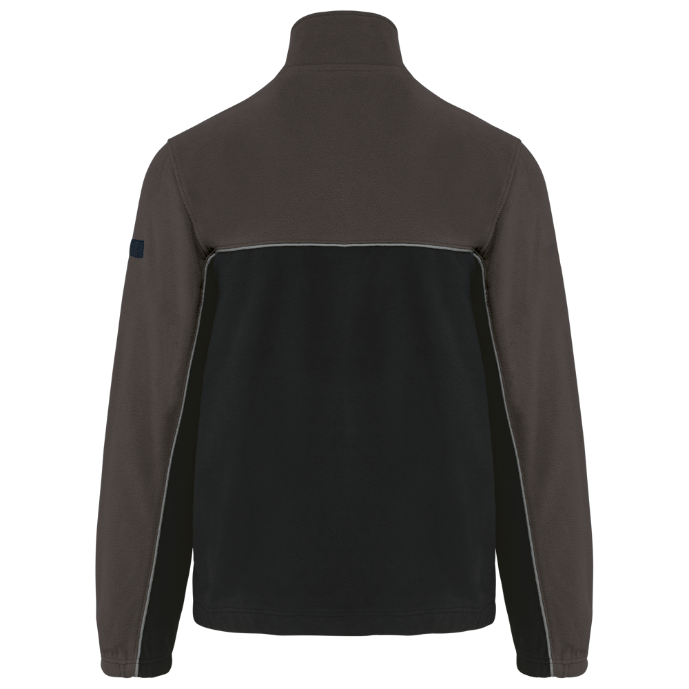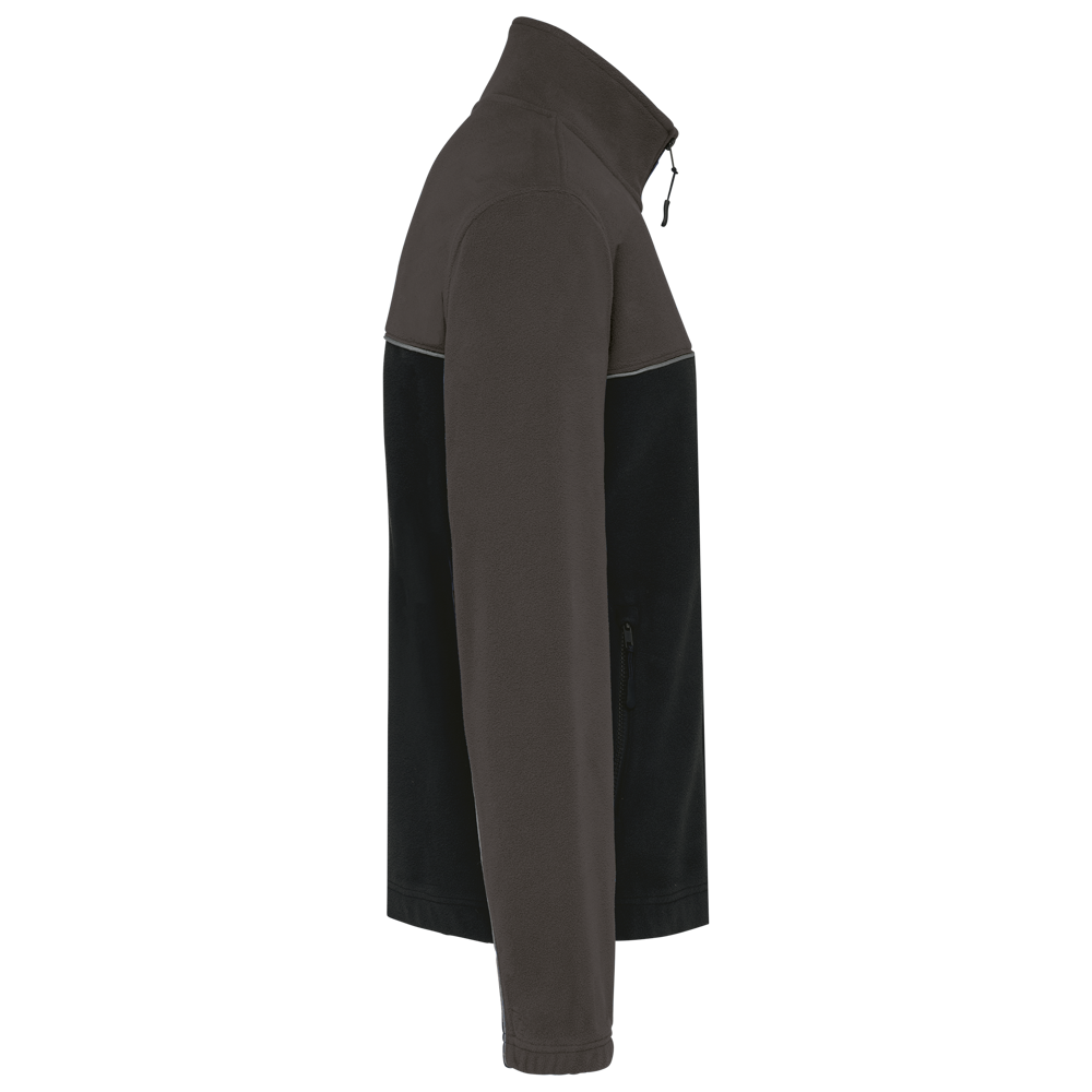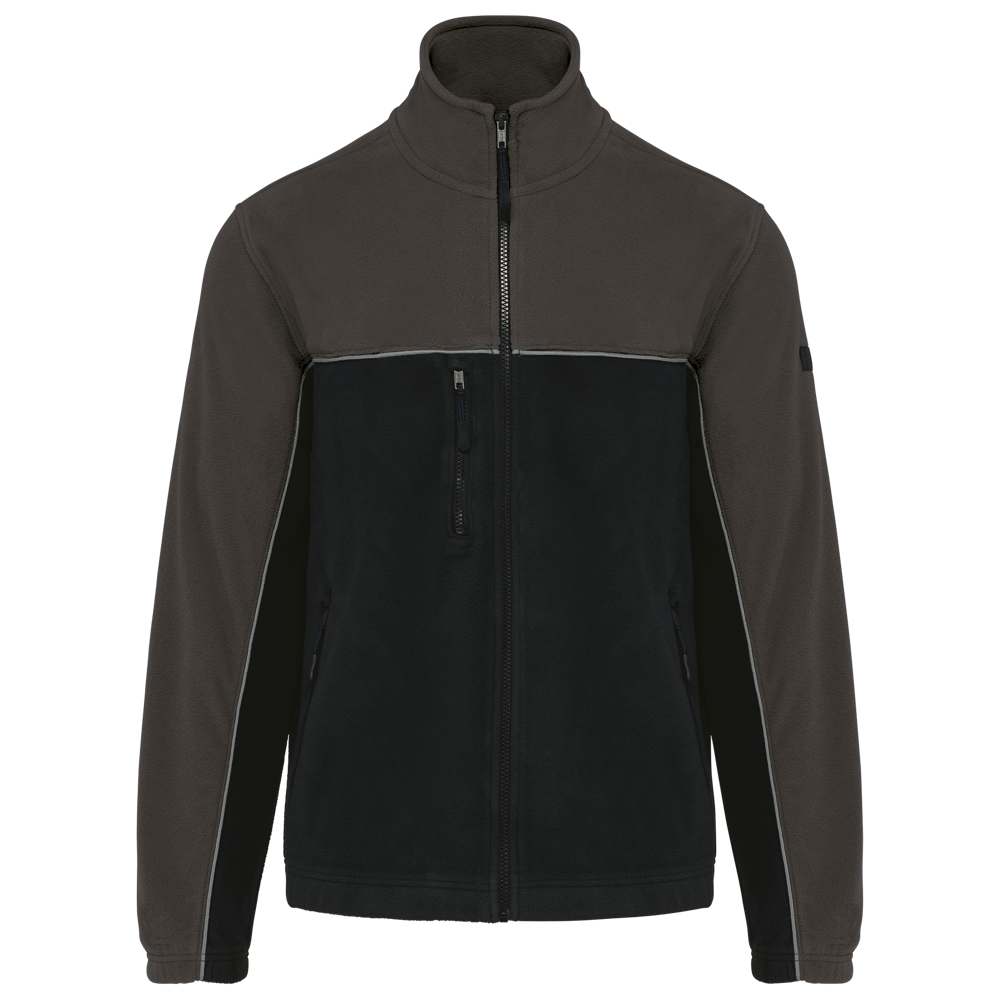 100% polyester. Gemaakt van 100% gerecycleerd polyester. Anti-pluis microfleece. Rechte snit. 2 ritszakken opzij + 1 borstzakje met rits Gerecycleerde toon-op-toon plastic ritsen met ritstrekker. Contrasterende nektape met visgraatmotief. Contrasterende bies tussen de tweekleurige delen van het kledingstuk (lichaam, voorkant mouwen en rug). Elastische penhouder met 3 vakken op de linkermouw. Ophanglint in de kraag. Elastische mouwuiteinden en boord. Tear-away merklabel.