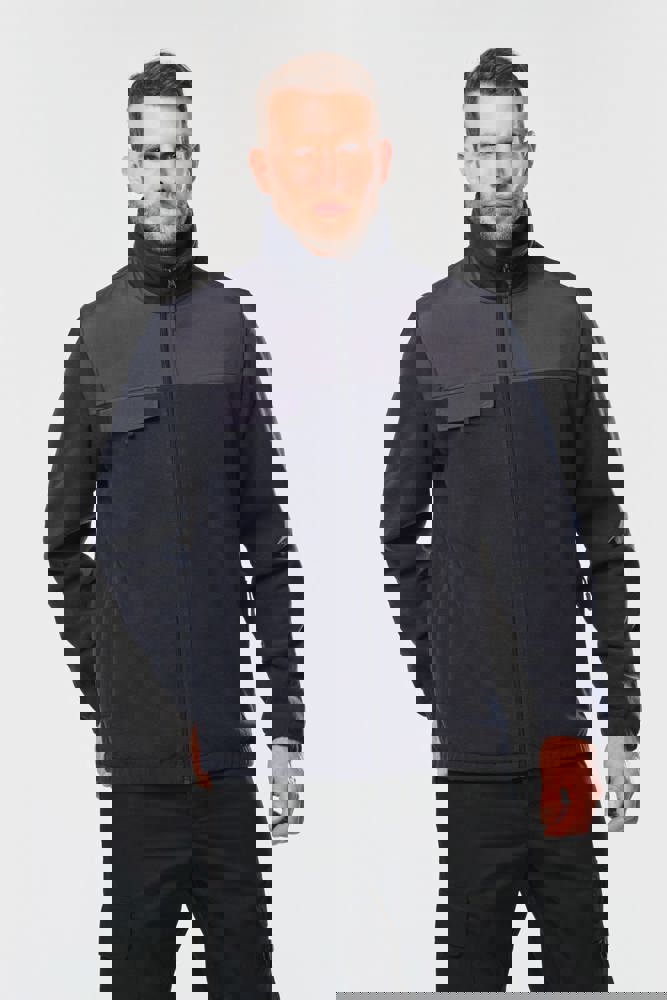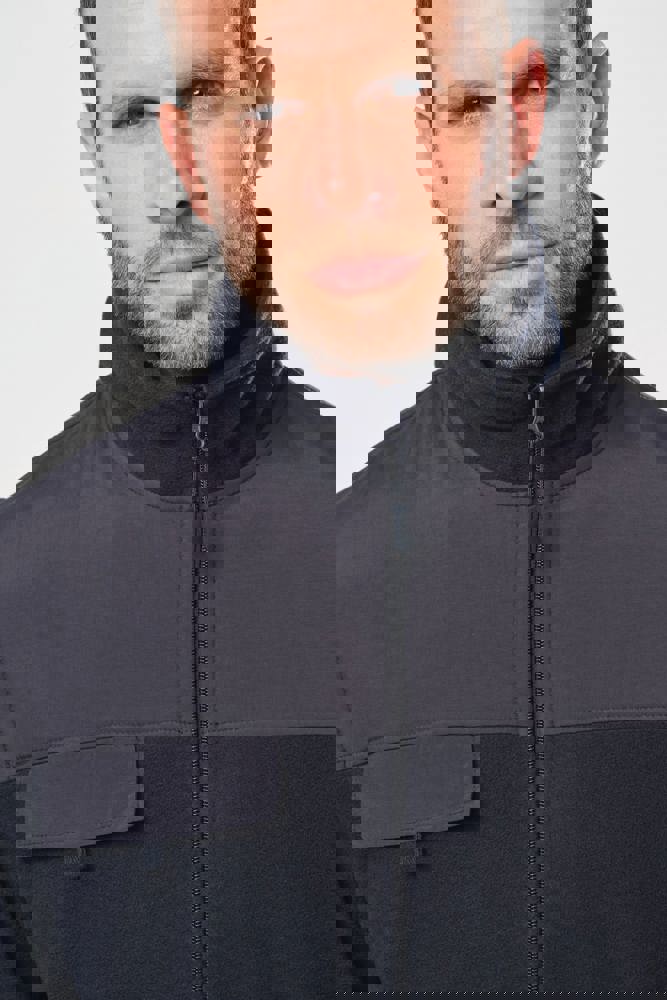 100% polyester. Buitenkant: fleece 100% polyester 400 g/m². Versteviging 100% polyester taslon met acrylcoating. Voering binnenkant mouwen polyester 210T. 2-in-1-fleecejas. 2 ritszakken aan de voorkant en 1 borstzak met klep en klittenband. Toon op toon inzetstukken aan de voor- en achterkant en onderarmen. Eenvoudige personalisatie voor- en achteraan. Afneembare mouwen met voering van polyester, voor meer comfort. Elastische mouw- en jasboorden.