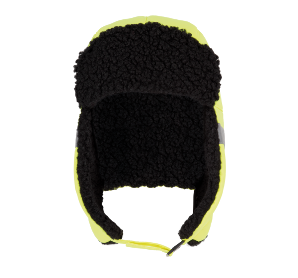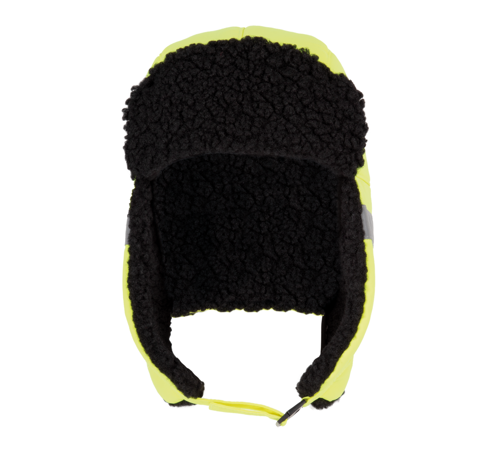 100% polyamide. Warme muts met een zachte vulling, ook in de kleppen voor de oren. Clipsluiting om de oorkleppen te verstellen.
