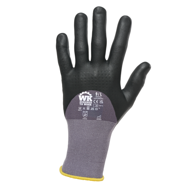 Gebreid in polyamide en elastaan. Gauge 15. Coating van micro-nitrilschuim op handpalm,, vingers...meer
