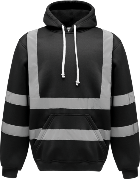 100% niet-pluizend polyester. 2 reflecterende stroken (5 cm breed) rond het lichaam en op de armen. Een reflecterende band op iedere schouder. Nektape. Capuchon (in het verlengde van de kraag) met aanrijgkoordje. Ingezette mouwen. Kangoeroezak aan de voorkant. Uiteinden van mouwen en kledingstuk in ribboord. Dubbel stiksel aan kraag, uiteinden van mouwen en kledingstuk. Norm EN ISO 20471 van klasse 3 : Hi-Vis Yellow, Hi-Vis Orange, Hi-Vis yellow/Navy, Hi-Vis Orange/Navy.