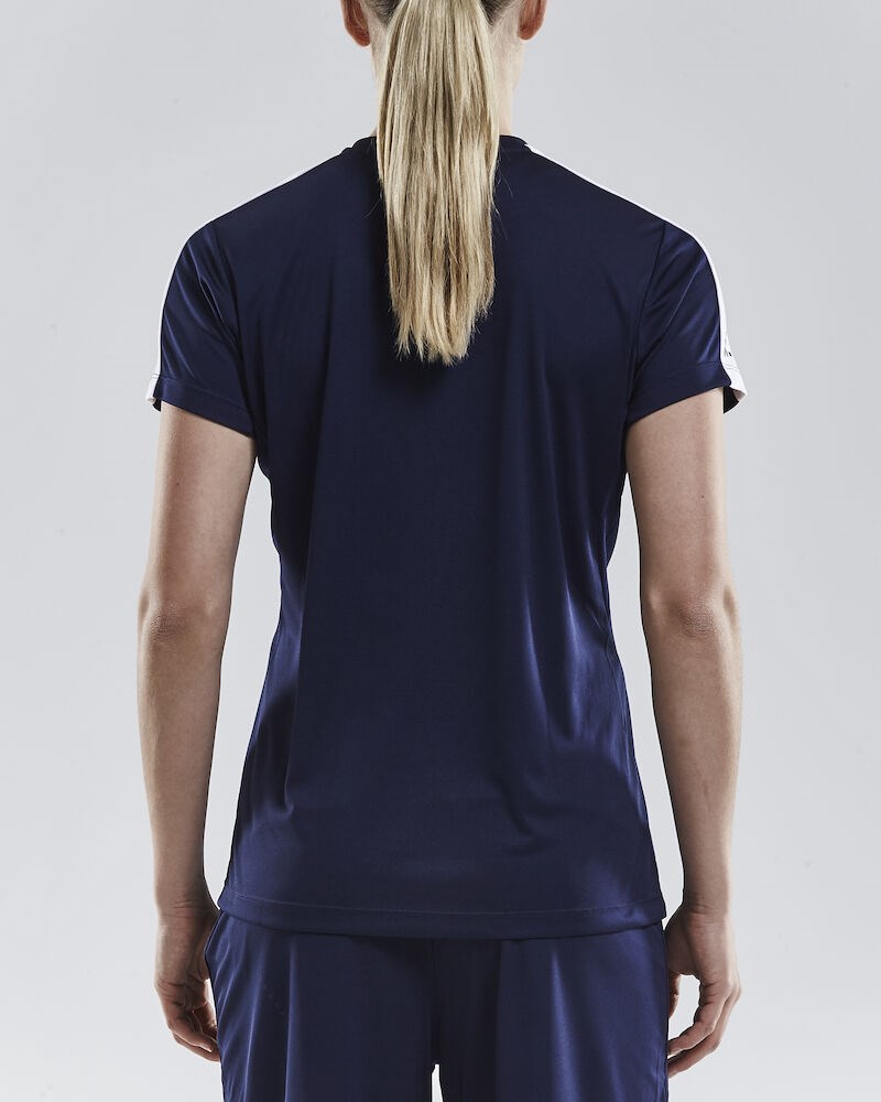 Match jersey made of stretchy and functional fabric offering superior moisture transport for maximum performance. Mesh panels in the armpits provide efficient body-temperature management while great elasticity and ergonomic design ensure comfortable fit and optimal freedom of movement. Female fit. Comes with a V neck that matches the contrasting side stripes.