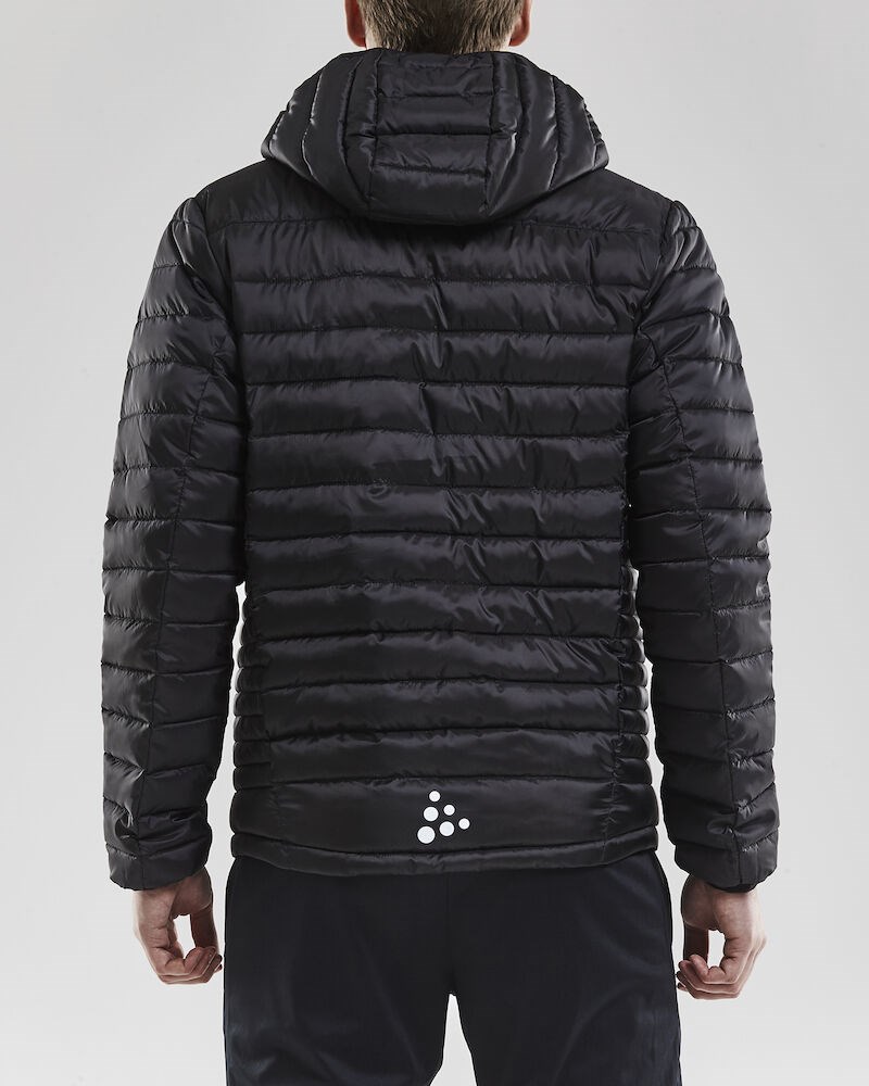 Padded, wind- and water-resistant jacket designed for warm-ups as well as more formal occasions. Features removable hood, zippered chest pocket and adjustable bottom hem. Padding made of microfiber with good thermal properties.