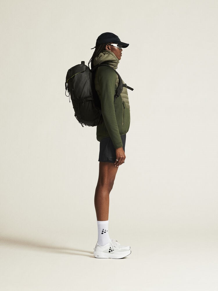 This insulation hybrid jacket combines lightweight 90/10 down insulation at upper body with brushed power fleece at sleeves, sides and lower body. The result is a versatile jacket that provides excellent warmth, efficient moisture transport, and optimal freedom of movement during intense physical activities in chilly conditions. The hybrid jacket also features slightly dropped back for enhanced protection and two side zip pockets for secure and convenient storage of keys, phone, energy bar, etc.