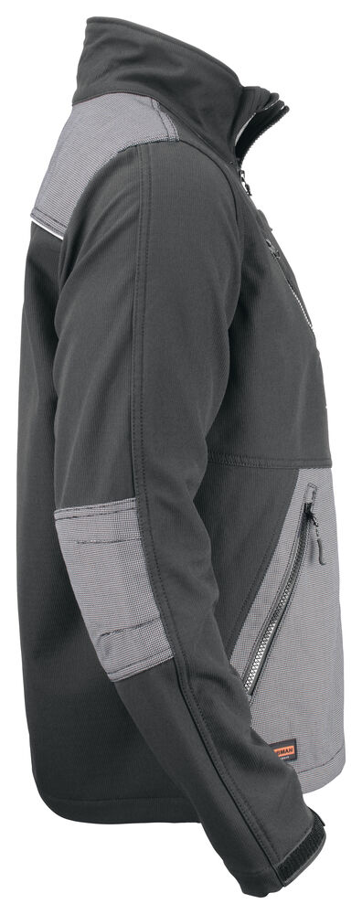 Geavanceerde 3-laags softshell jas, ideaal te dragen als derde laag door het weerbestendige membraam. De jas is hoogwaardig afgewerkt met fleecevoering en Cordura® op de schouders, ellebogen en buik voor extra bescherming van de meest kwetsbare delen. Verder is de jas uitgerust met een borstzak met rits, twee ruime zakken op de voorzijde met rits en binnenzakken. De jas is voorzien van reflecterende details, verstelbare manchetten en subtiele Jobman branding.