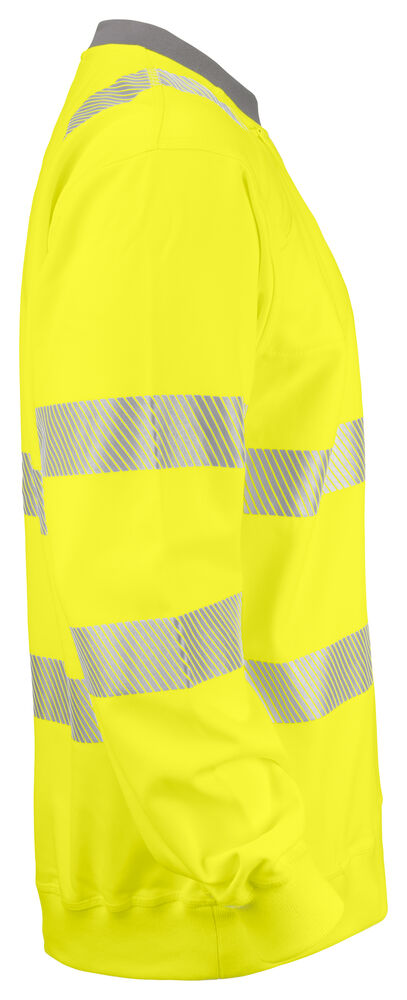 Functionele Hi-Vis trui gemaakt van polyester/katoen met een geruwde binnenkant. De trui is voorzien van een handige borstzak met rits en ruimte voor een ID-kaart. De trui is professioneel afgewerkt met rib in de boord en manchetten. Verder heeft de trui soepele reflecterende strepen op de borst, armen en schouders voor extra zichtbaarheid en comfort.
