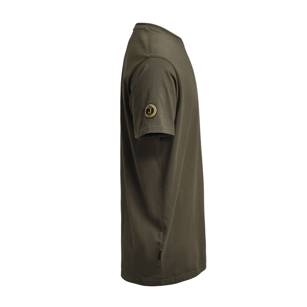 T-shirt gemaakt van ringgesponnen, voorgekrompen en gekamd single jersey katoen. Rib in de nek is gemaakt van 95% katoen en 5% elastaan. Kleur 7600 (olijfgroen) heeft een decoratief label op de rechtermouw. Oeko-Tex® gecertificeerd.