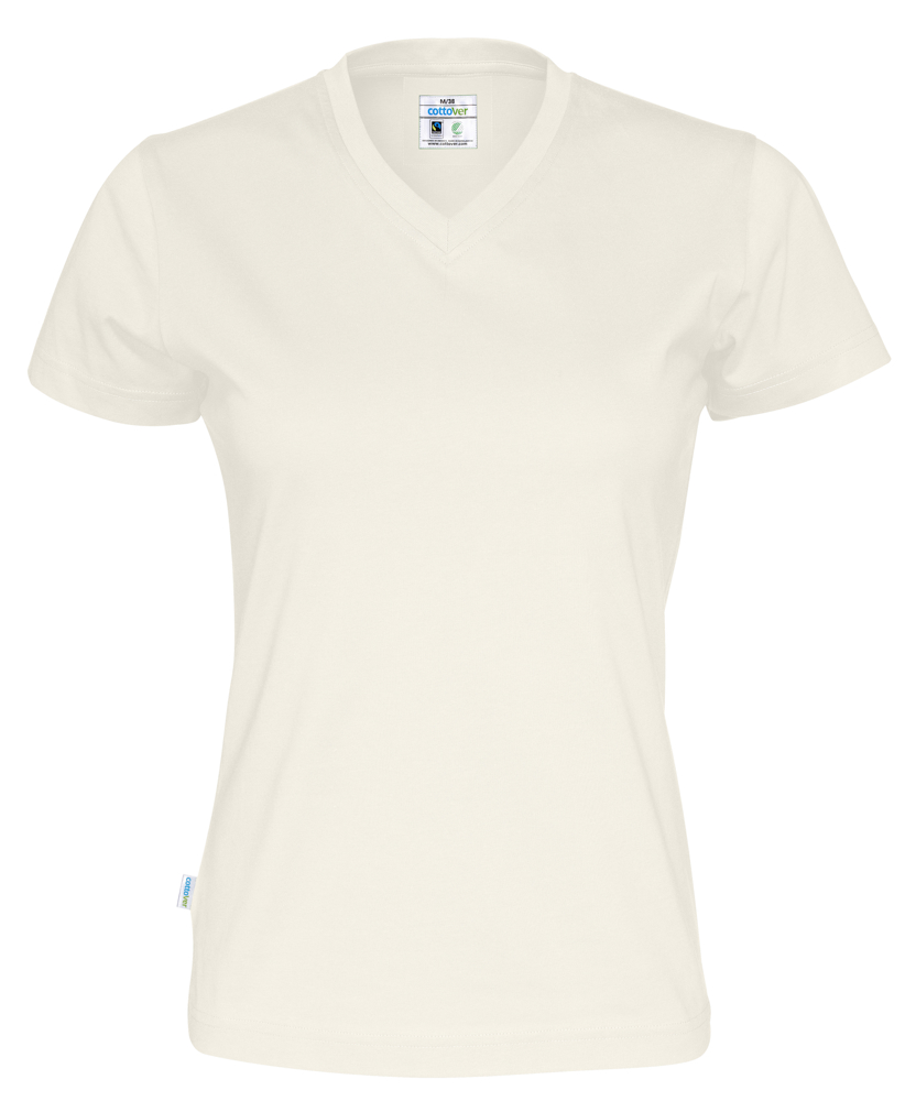 T-SHIRT V-NECK DAMES - GOTS GECERTIFICEERD Gebroken Wit XS