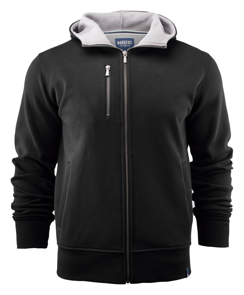 Sweatshirt met capuchon in double face materiaal met fleece aan de binnenzijde en single jersey aan de buitenzijde. Ritssluiting in metaal en verticale borstzak op de linkerborst. Ribboord aan de manchetten en zoom onderaan en lusje met Harvest-logo aan de zoom.