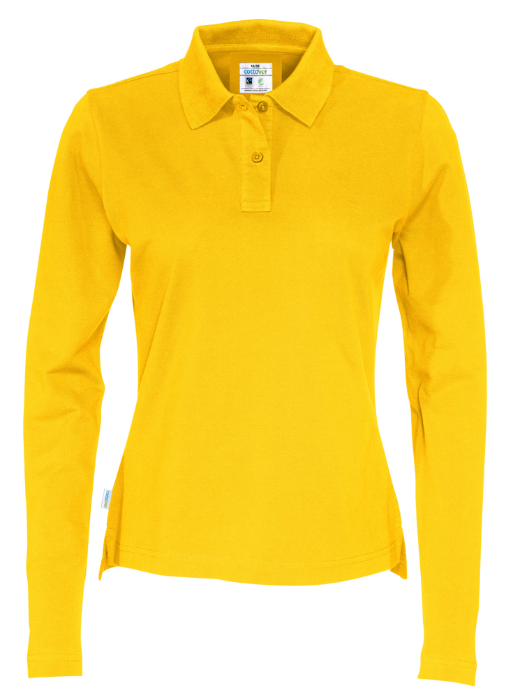 POLO PIQUE LONG SLEEVE DAMES - GOTS GECERTIFICEERD Geel XS