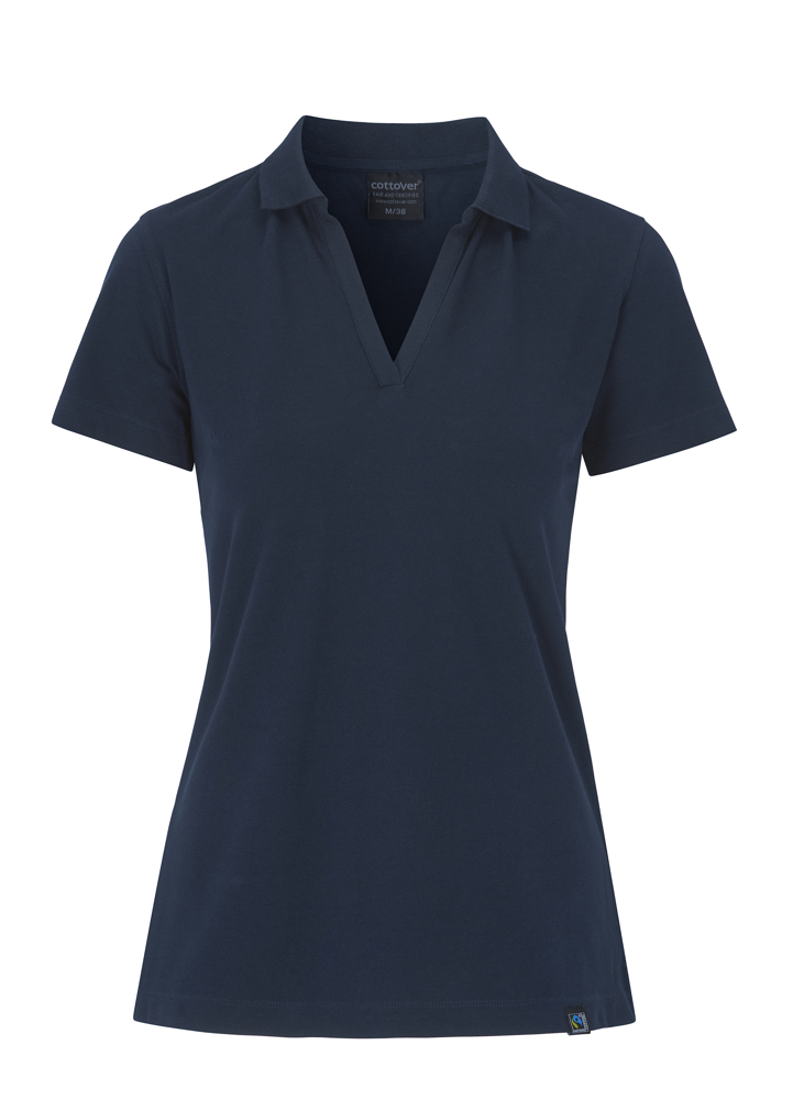 Damespolo piqué in stretchkwaliteit van ecologisch Fairtrade katoen met elementen van elastan voor een betere pasvorm. Geribde kraag en manchet, splitje onderaan