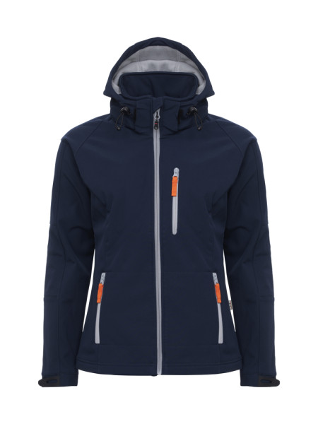 Softshell jas met contrasterende microfleece aan de binnenzijde. Wind- en waterbestendig (WP3000/MVP2000), afritsbare capuchon en manchetten verstelbaar met velcro. Elastisch trekkoord met stopper aan de capuchon en onderaan de zoom. Eén borstzak, twee zijzakken en één binnenzak.
