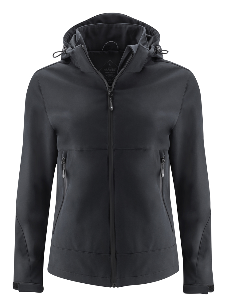Wind- en waterafstotende softshell jas. Omgedraaide, waterdichte ritssluiting vooraan en aan de zijzakken. Binnenzak aan de linkerzijde met ritssluiting. Afneembare capuchon. Aanpasbare velcro sluiting aan de manchetten. De capuchon en de zoom zijn aanpasbaar met elastische trekkoorden. Verborgen ritssluiting aan de binnenzijde voor print- en of borduring.