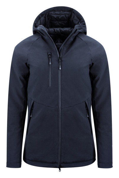 Middellange winterjas. Buitenstof gebonden met fleece aan de binnenkant. Two-way waterdichte ritssluiting vooraan en aan de borstzak.