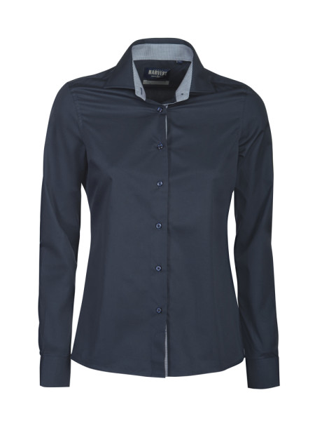 Dameshemd van hoge kwaliteit in gekamd katoen met contrastkleur onder de kraag, aan de knopenband, manchetten en neklint. Voorzien van extra versteviging aan de naden, kraag en manchetten. De stof is nabehandeld met easy care voor makkelijk wassen en strijken. Moderne pasvorm met naden op de rug. Dit hemd is op aanvraag ook verkrijgbaar in korte mouwen. Oeko-Tex 100 gecertificeerd.