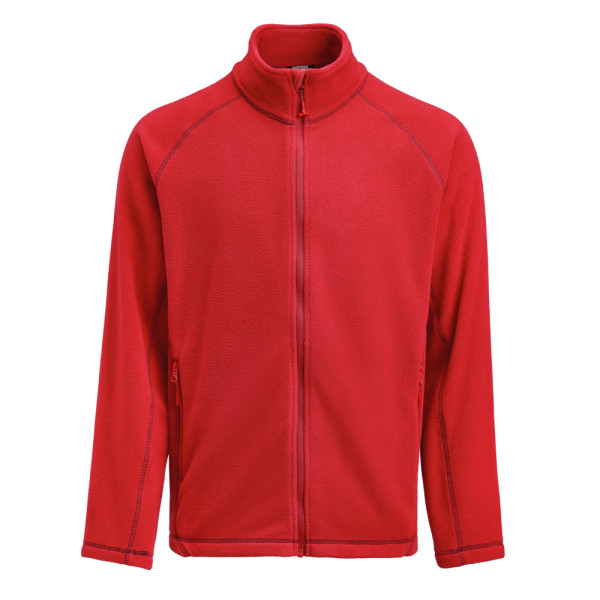Maak kennis met onze veelzijdige fleece, gemaakt van gecertificeerd gerecycled polyester en ontworpen voor comfort. Deze fleece heeft contraststiksels die een moderne uitstraling geven, en raglanmouwen voor verbeterde mobiliteit en een sportieve uitstraling. De twee zijzakken met ritssluiting bieden handige en veilige opslag voor je essentiële spullen. Het jack biedt warmte en comfort.