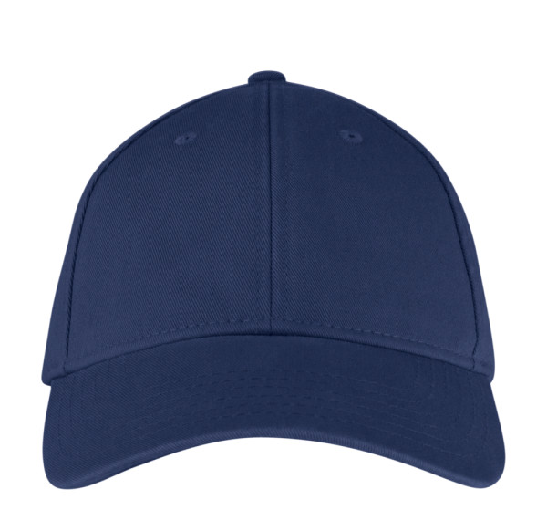 Pet van geruwde twillkatoen met voorgebogen klep en verstelbare velcrostrip aan achterzijde.