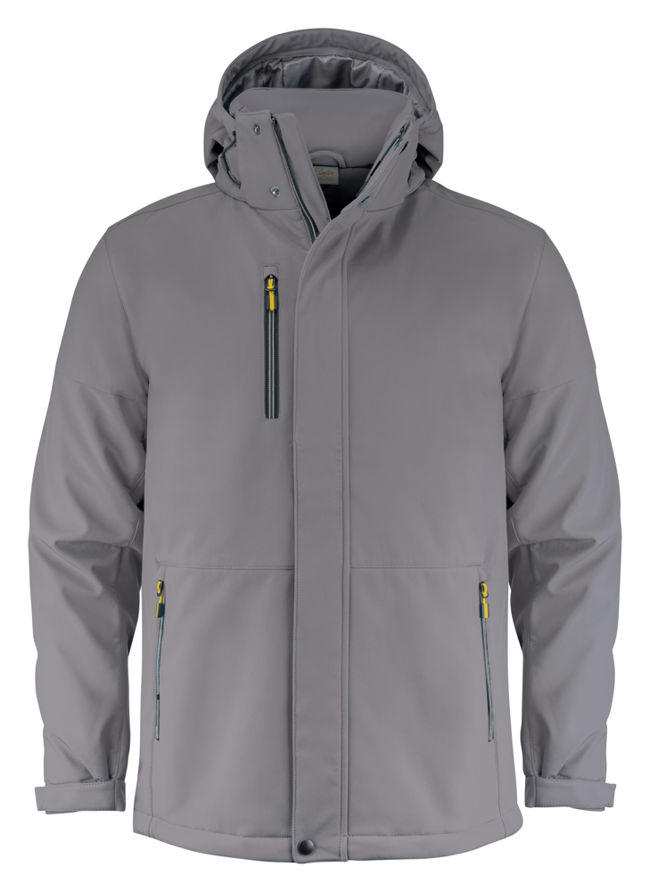 Gevoerde softshell jas met afneembare capuchon en stormflap met drukknopen. Aanpasbare mouwen met velcrosluiting en trekkoorden aan de capuchon en de zoom. 2 binnenzakken met ritssluitingen. Reflecterende piping op de rug. Uitscheurbaar neklabel en afzonderlijk geweven maatlabel. Aan de binnenzijde van de linkerzijnaad werd een zakje voorzien voor het innaaien van een waschip. De zippullers kunnen indien gewenst vervangen worden door één van de andere beschikbare kleuren. Oeko-Tex 100 gecertificeerd.
