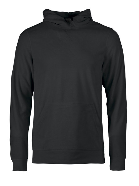 Hoody in microfleece met capuchon voor dames en heren. Kangoeroezak en elastisch trekkoord aan de capuchon.