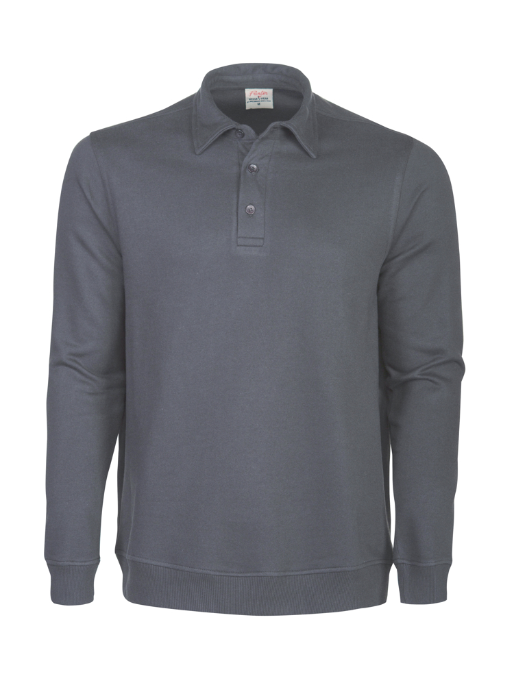 Sweatshirt met polokraag. 2 x 2 rib met elastaan aan de boord onderaan en aan de manchetten. Oeko-Tex 100 gecertificeerd.
