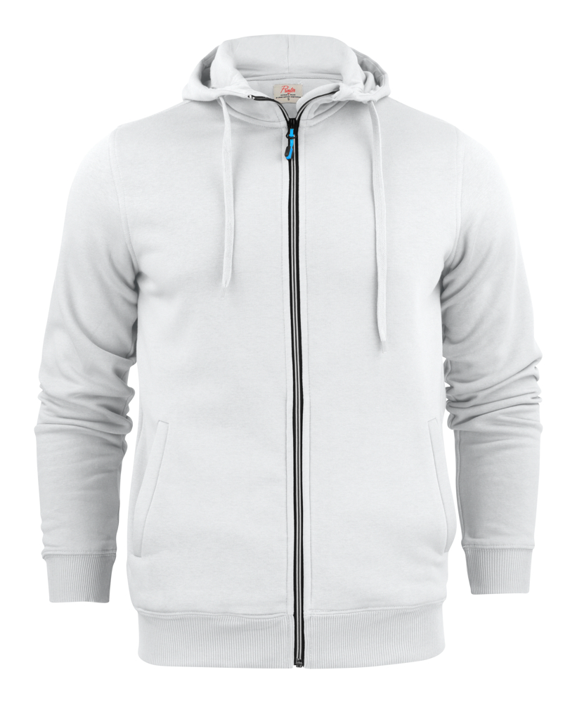 Sweatshirt met capuchon met tweekleurige ritssluiting vooraan en lichtgebogen steekzakken. De binnenzijde van de capuchon is single jersey. De zippullers kunnen indien gewenst vervangen worden door één van de andere beschikbare kleuren. Oeko-Tex 100 gecertificeerd.