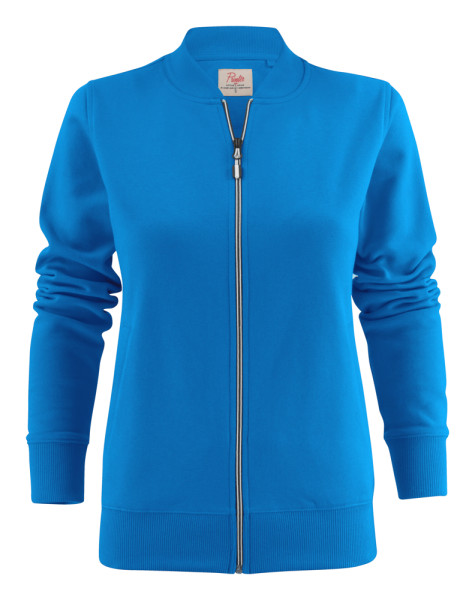 Sweatshirt met volledige, tweekleurige ritssluiting vooraan en lichtgebogen steekzakken. Het damesmodel heeft paspelzakken en een geribde opstaande kraag. De zippullers kunnen indien gewenst vervangen worden door één van de andere beschikbare kleuren. Oeko-Tex 100 gecertificeerd.