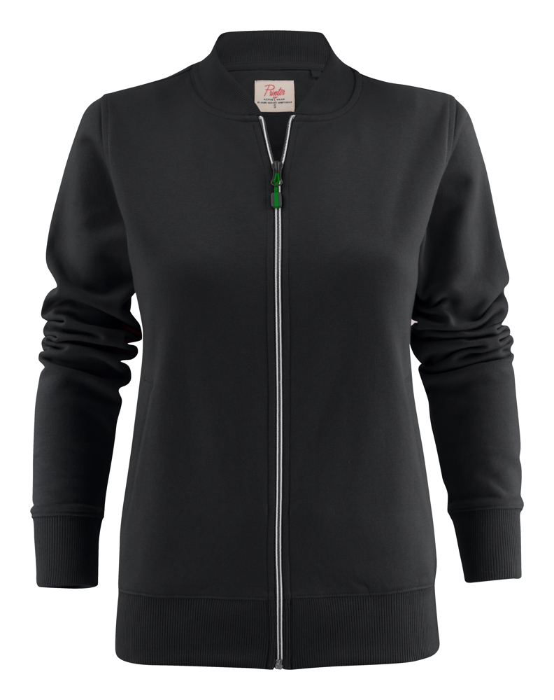 Sweatshirt met volledige, tweekleurige ritssluiting vooraan en lichtgebogen steekzakken. Het damesmodel heeft paspelzakken en een geribde opstaande kraag. De zippullers kunnen indien gewenst vervangen worden door één van de andere beschikbare kleuren. Oeko-Tex 100 gecertificeerd.