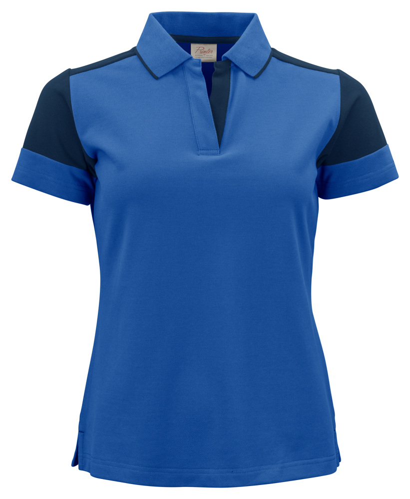 Bicolor polo piqué met korter knopenpad en contrasterende tipping aan de kraag zonder knopen. Contrasterend lint in de nek en aan de zijsplitjes. Uitscheurbaar neklabel en afzonderlijk geweven maatlabel. Aan de binnenzijde van de linkerzijnaad werd een zakje voorzien voor het innaaien van een waschip. Oeko-Tex 100 gecertificeerd.