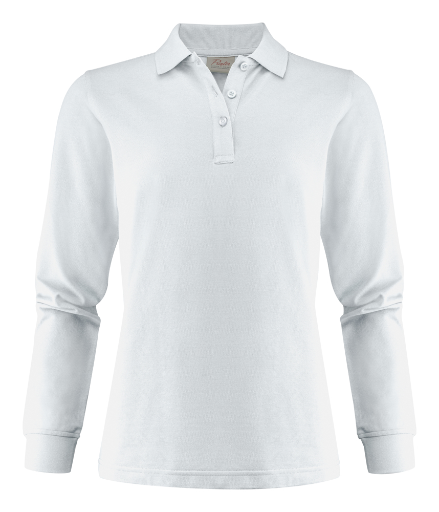 Polo piqué met lange mouwen, tricotkraag en zijsplitten. Drieknoopssluiting. Aan de binnenkant van de linker zijnaad werd een zakje voorzien voor het innaaien van een waschip. Oeko-Tex 100 gecertificeerd.