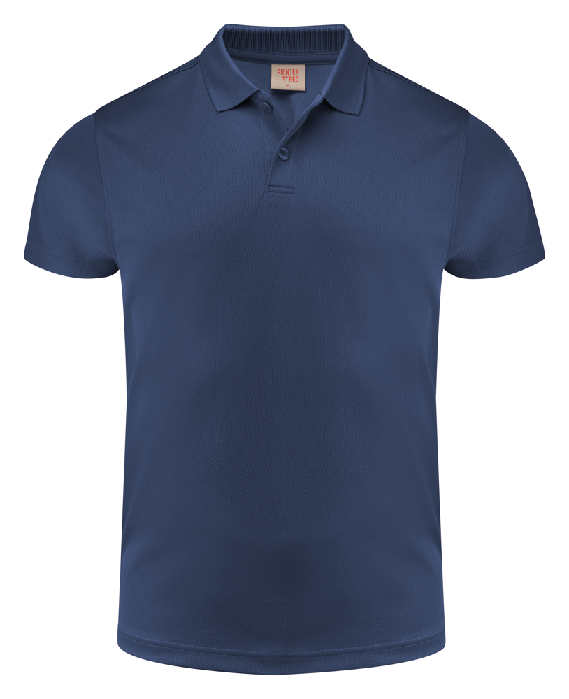 Polyester polo met toon-op-toon tweeknoopsluiting. Het materiaal is spun-dyed wat betekent dat deze polo’s ingeverfd worden met een verfmethode waarbij minder water gebruikt wordt en als extra voordeel een betere kleurechtheid geeft. Oeko-Tex 100 gecertificeerd.