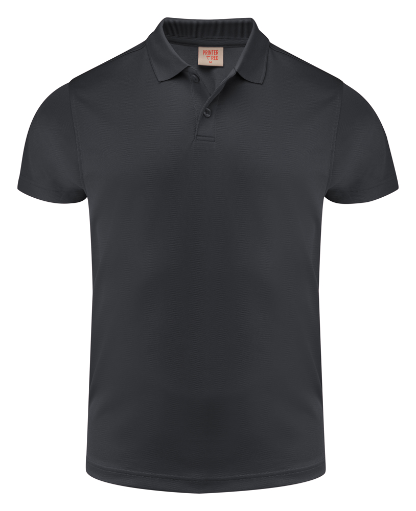 Polyester polo met toon-op-toon tweeknoopsluiting. Het materiaal is spun-dyed wat betekent dat deze polo’s ingeverfd worden met een verfmethode waarbij minder water gebruikt wordt en als extra voordeel een betere kleurechtheid geeft. Oeko-Tex 100 gecertificeerd.