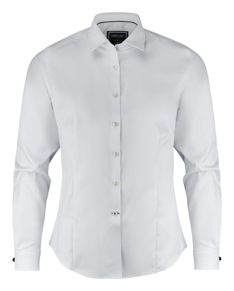 De Black Bow 60, nooit strijken, nanotechnologie, water, olie en vlekafstotend, mechanisch rek, machinewasbaar. Gespleten juk aan de rug, versterkte naden helpen het hemd er scherp uit te zien.