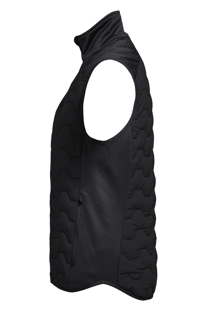 Deze lichtgewicht, winddichte en opvouwbare bodywarmer is gemaakt voor avontuurlijke reizen: draag hem alleen als bodywarmer of als tussenlaag onder een shelljack als de temperatuur daalt. De voor- en achterkant zijn gemaakt van een rekbare, gewatteerde stof met een lichte vulling van 100% polyamide. De zijkanten zijn gemaakt van 90% polyester en 10% elastaan. Zowel de taille als de armsgaten zijn elastisch en de jas heeft twee voorzakken met ritssluiting. De bodywarmer is winddicht en heeft een opstaande kraag om de nek te beschermen.