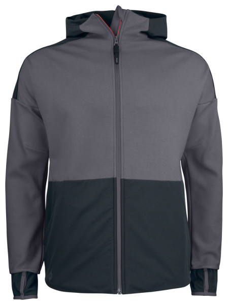 • sweatvest met capuchon • softshell verstevigingen aan de voorzijde, op de schouders en aan de capuchon • nauwsluitende pasvorm voor meer bewegingsvrijheid • reflecterende details aan de schouders • zijzakken met ritssluiting • extra manchet in mouweinde met duimgrip • ruime binnenzakken in mesh
