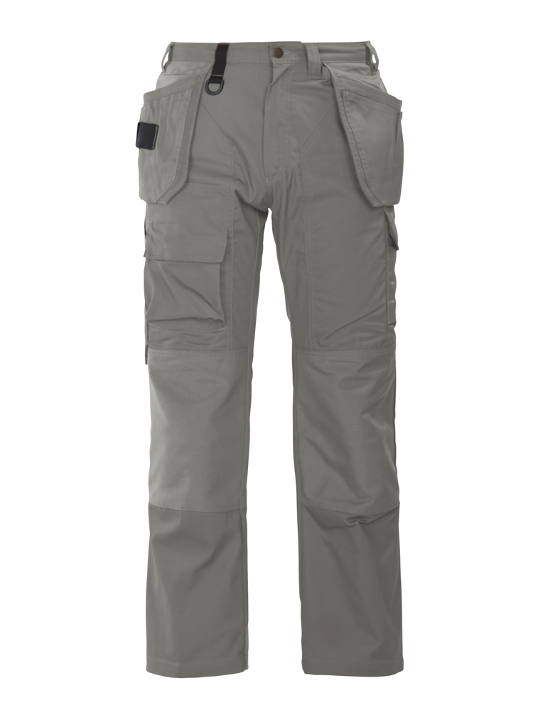 • twee spijkerzakken, binnenin verstevigd met Cordura®, die opgeborgen kunnen worden in de voorzakken • dubbele stoffering op de dijen • verstelbare kniezakken aan de binnenzijde. Verstevigd met Cordura® aan de buitenzijde • twee zijbeenzakken: linker: ruimte voor telefoon, pennen, gereedschappen; rechter: twee aanpasbare hamerhouders, potloodzakje, duimstokzak en mesknoop • twee ruime achterzakken • twee D-ringen • voorgevormde knieën • Cordura® aan de achterkant van de broekspijpen onderaan