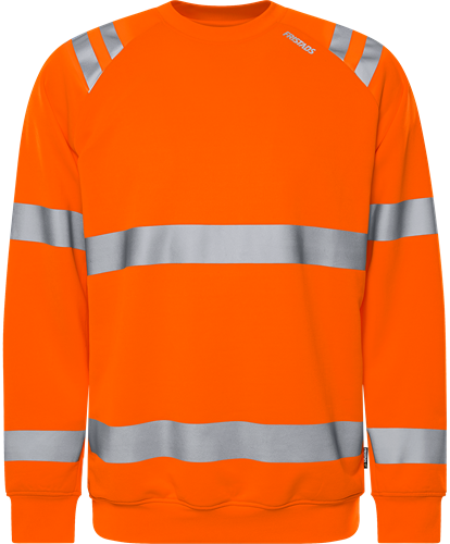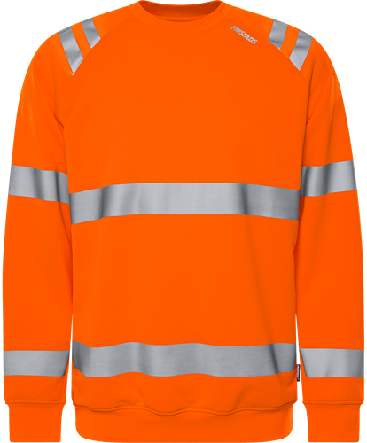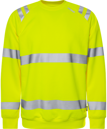 Hogezichtbaarheids sweater gemaakt van zacht gerecycled materiaal. Een klassiek sweatshirt met ronde hals en stretch reflecterende transfers. Concept: Trofta